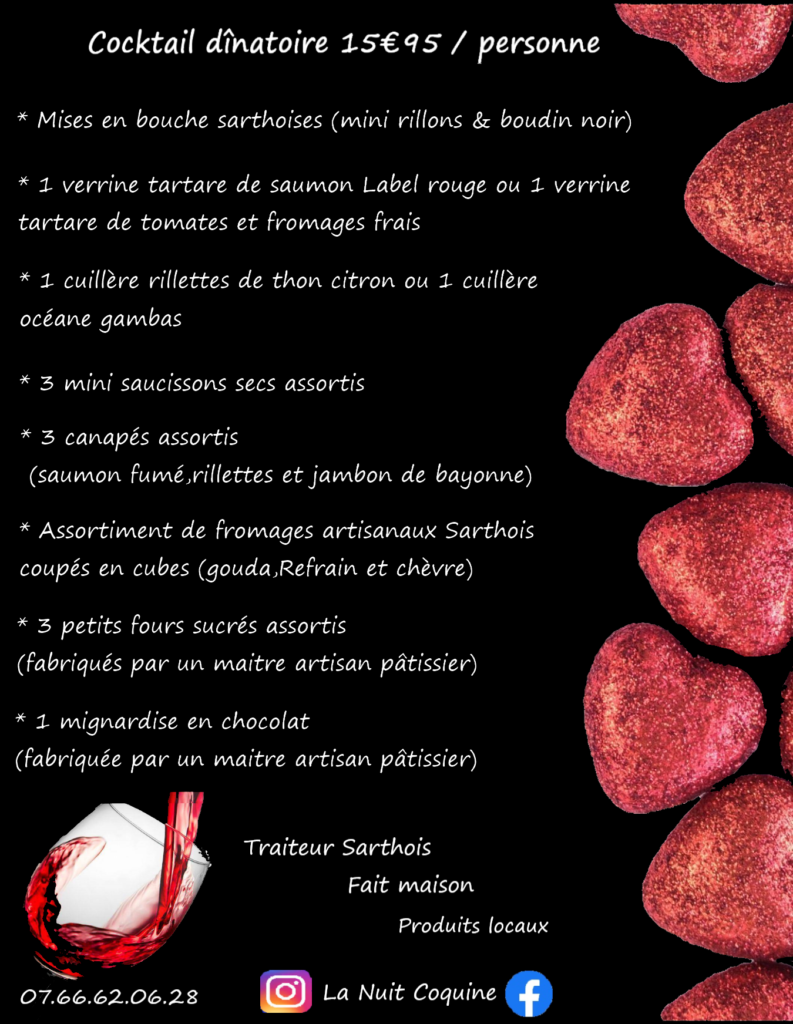 Il vous est possible de commander un cocktail dînatoire ( fait maison avec des produits locaux 🤗 ) qui vous sera mis à disposition dès votre arrivée ….